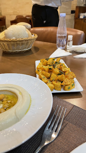 This is a lebanese restaurant serves light dishes and sandwiches. Small seating area but clean and cozy. Servers are friendly and the food is great in general. Our order is as following: batata harra (spicy potatoes), crispy with mild heat. Tabboule, good portion and we'll dressed. Fattat mouzat (meat and yogurt), the taste is on point but the issue with this dish is that the placed the crispy pita chips under meat and sauce Wich made it soggy and crunchless. Hummos with beef shawerma, excellent taste of hummos and the beef was well seasoned. Awsal sandwich (beef cubes sandwich) the meat was tender and balanced with the condiments. Sujok sandwich (lebanese sausage sandwich), the proportion of sujok to bread and stuffing are not right. Small tiny sausage in a bread with garlic sauce and tomatoes and pickles. The taste is good but not enough sausage. Overall, the meat quality is high which was our motive to try. The food tasted great but the prices are higher...