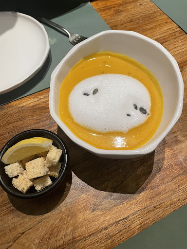 the soup was surprisingly very very good! i personally hate pumpkin, but this was delicious. its creamy, tastes almost like a curry, and has a little cheese melted through it. if there’s one thing you should eat when you come here it’s this.
