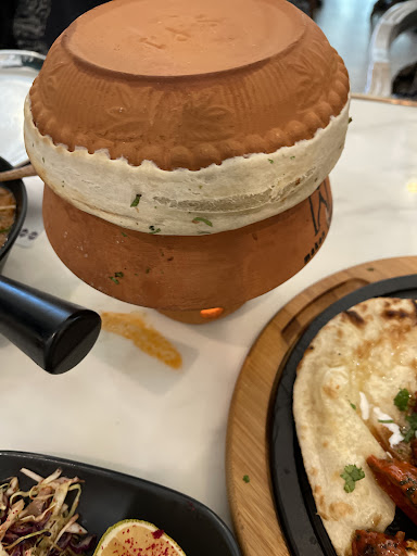 Ambience 4/5. Clean and new. They serve food in clay pots or stainless steel plates. They need larger napkins though
