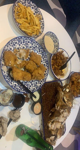 نجي للملاحظات والتجربة الشوربة كانت طيبة - الجمبري المقلي كان جيد لكن البقسماط او الدقيق المستخدم كان شارب زيت كثير بالنسبة للعرض كان فيه سمك مقلي وسمك مشوي و٤ حبات كراب و طاجن حمر و رز صيادية و سلطة وبيجي معاها صوصات حمر و طحينة وكوكتيل صوص السمك المقلي حاطين حبتين صغيرة جدا بينما لو كانت حبة واحدة بحجم مناسب كانت أطيب لأن مو أي سمك صغير مناسب للقلي وكانت معدومة الطعم وبهاراتها خفيفة جدا لا تذكر .. أما المشوي فكما أسلفت تمنينا القاروص لأنو أطعم في الشوي لكن لسوء حظنا مافي حجم يناسب العرض الموجود في المنيو ؟؟ عموما السمكة المشوية اللي قدموها كانت جيدة كتتبيله لكن ناشفة شوية نوعا ما .. طاجن الحمر كان حامض جدا جدا والمفروض تكسر الحموضة قليلا ويتبهر كويس .. الرز الصيادية يحتاج تعديل كامل غير انه جاءنا دافي أقرب للبرودة .. الكراب كانت خلطة الكريمة أو البشاميل ثقيلة نوعا ما .. السلطة عادية طيبة الصوصات الطحينة ممتازة .. الكوكتيل ممتاز .. الحمر حامض جدا بدون أي كسره أو تتبيل (يحتاج تعديل) ولا يوجد صوص دقس او صوص حار مع العلم انه شبه متعارف عليه وثابت في مطاعم المأكولات البحرية