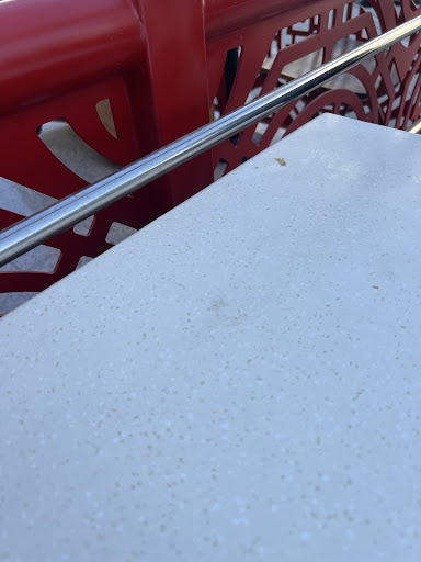 The table is very dirty and there is food. No one came to clean it until I told them.