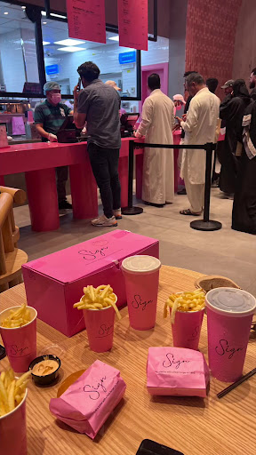 Well obviously I saw the SIGN 😅 located just after Al Abeer medical center in Bawadi. It’s less crowded comparing to the first branch in Prince Sultan. The concept was all Pink- and the restaurant was simply aesthetically designed from inside out. We had the beef meal and spicy chicken meal- comes with a large size drink of your choice and home made fries. The service is fast and no long waiting line. All meals are priced at 24sr which is totally acceptable and worth it. The beef meal was served with 2 beef Patties. The taste is very similar to the famous Macdo Beef burgers ( another good thing for those boycotting Macdo - this is a great alternative 😎). The spicy chicken meal didn’t disappoint me at all. The chicken is very crispy yet tender on the inside. For those saying it was overhyped-then I believe it was for a good reason. You’re having good food at very...