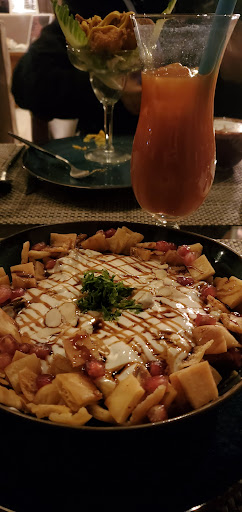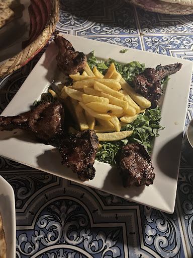 Read moreThe restaurant is located on the mainstreet of Old Town AlUla so it was easy to find and well lit. We had a large group and they made a space to accommodate us all. Even with a language barrier, our waiter was super friendly, ready to help us out and on time with our dishes. I had the Fetteh Eggplant dish which tasted just amazing with each bite. A bit of a marinara flavor and then some seasonings I did not recognize. The cream sauce on top evened out the acidity tomato sauce and there were lots of slices of eggplant in my meal. For dessert, I had the Al Qalsh. It was very dense and lots of melted sugar on it top. There were gas lit heaters to keep us warm since we were outside but there is indoor seating...