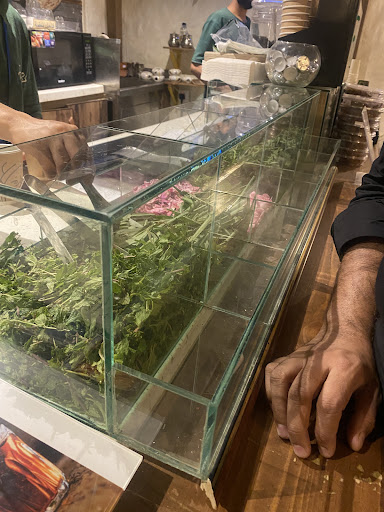 We tried the recommended tea, a local specialty infused with mint, lemongrass, and rose. It was absolutely delicious and a perfect representation of the flavors of the region. Alongside the tea, we had the date cake, which was also very good. The only thing i didnt love was the use of plastic spoons.