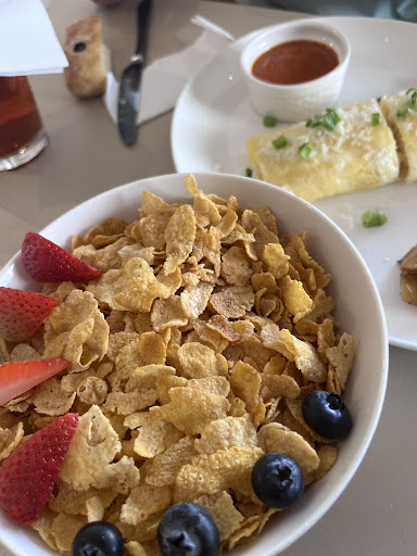 The traditional breakfast came without eggs, also we had just four slices of bread, which was not enough. Then we ordered eggs, which took about 15 minutes to prepare. The vegetables they brought included a cucumber that was in a spoiled state. The berries that came with the pancakes were also spoiled. The Nutella served with the pancakes was too runny—it shouldn’t be that liquid. The pancakes were falling apart.