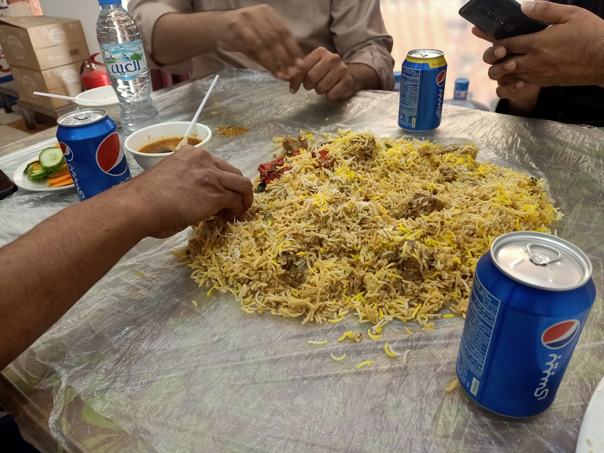 It's a fantastic restaurant having delicious biryani. It's a wonderful place for Pakistani and Indian people . Specifically for visitors who are local and foreigners who desperate to eat some thing tasty and equally with reasonable rates. Here I would like to share good points and cons Good one- 1- fantastic food specially biryani and chicken 65 and Rogan gosth or chai..... 2- very humble staff 3- ample of car parking🥳 thanks to Allah 4- very close from haram if you have your own car and even if you are visitor then take taxi, taxi can take maximum 10 SAR 5- not so much waiting 6- last and most good part visitors/hajjis can also request HOME DELIVERY if you are close to haram Cons-