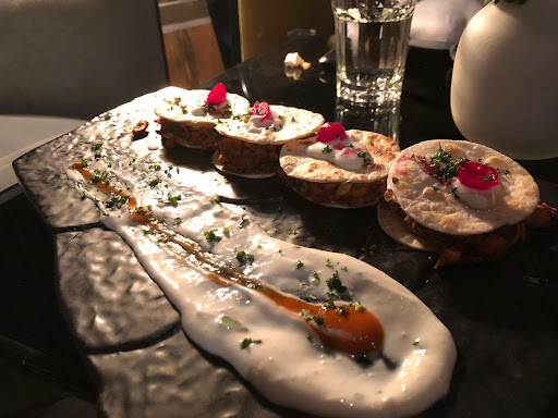 Read moreLovely ambience, amazing food and a very welcoming staff. Enjoyed the Duck Samosas, Chicken Changezi Quesadillas, tres leches Rasmalai, chicken tikka masala and dirt pie. Everything we ordered was cooked to perfection, the Duck Samosas were just too delicious for words and an ingenious menu option. Their presentation is really inventive and fun, it's more about the experience than the food itself. We were also treated to welcome shots which were really tiny bite sized flavoured yoghurt bits in shot pots placed over a fuming dish that was actually emitting icy smoke.. loved it too.