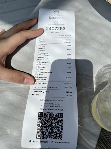 Kohinoor Restaurant truly stands out as a gem in Riyadh's culinary scene. The culinary journey here was a delightful adventure, with each dish showcasing not only superb quality but also a perfect balance of flavors. The chicken and mutton biryani were undoubtedly the stars of the show, demonstrating the chef's expertise and commitment to authenticity.