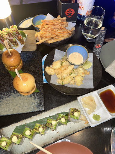 We went for shishito peppers š¶ , chicken chipotle tacos š®, mnky truffle rice š, PRAWN TEMPURA MAKI š¤, KING CRAB SALAD š„, Dragon Passion , coffee latte āļø.