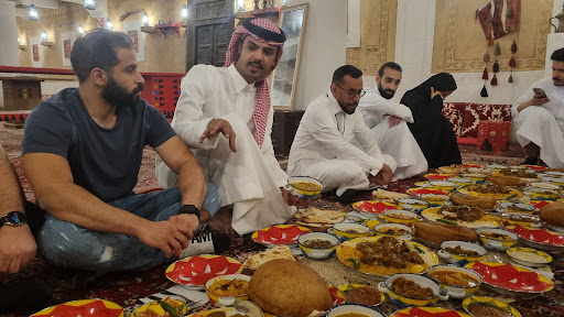 Read moreWe attend an event called "Celebration of Saudi", offering a mix of cultural and culinairy highlights of the country. Overall an enjoyable evenening where even long term residents will find and learn some new things about KSA. The prgram starts with a "dress like a Saudi" item, dressing men in the traditional headgear and woman in bedouin jewellery. This part feels a bit forced, without long practice it inevitable feels like a mess on your head and makes people look foolish. Perhaps better skipped. The program continues with a challenge to identify 15 spices, a fun and surprisingly difficult activity followed by blending your own preferred blend of Douga. Sitting down for dinner is a bit of a challenge, we're not used to sit on the floor while eating. While the dinner covers a lot of different dishes, including goat, camel and chicken dishes along with bread and veggies, the way it is served means it neither very warm nor refined. Desert is pancakes with a selection of local honey to sample from. The evening finished with a short section about Arabic coffee, Oud burning and brewing of blue tea from local flowers. Overall experience sort of...
