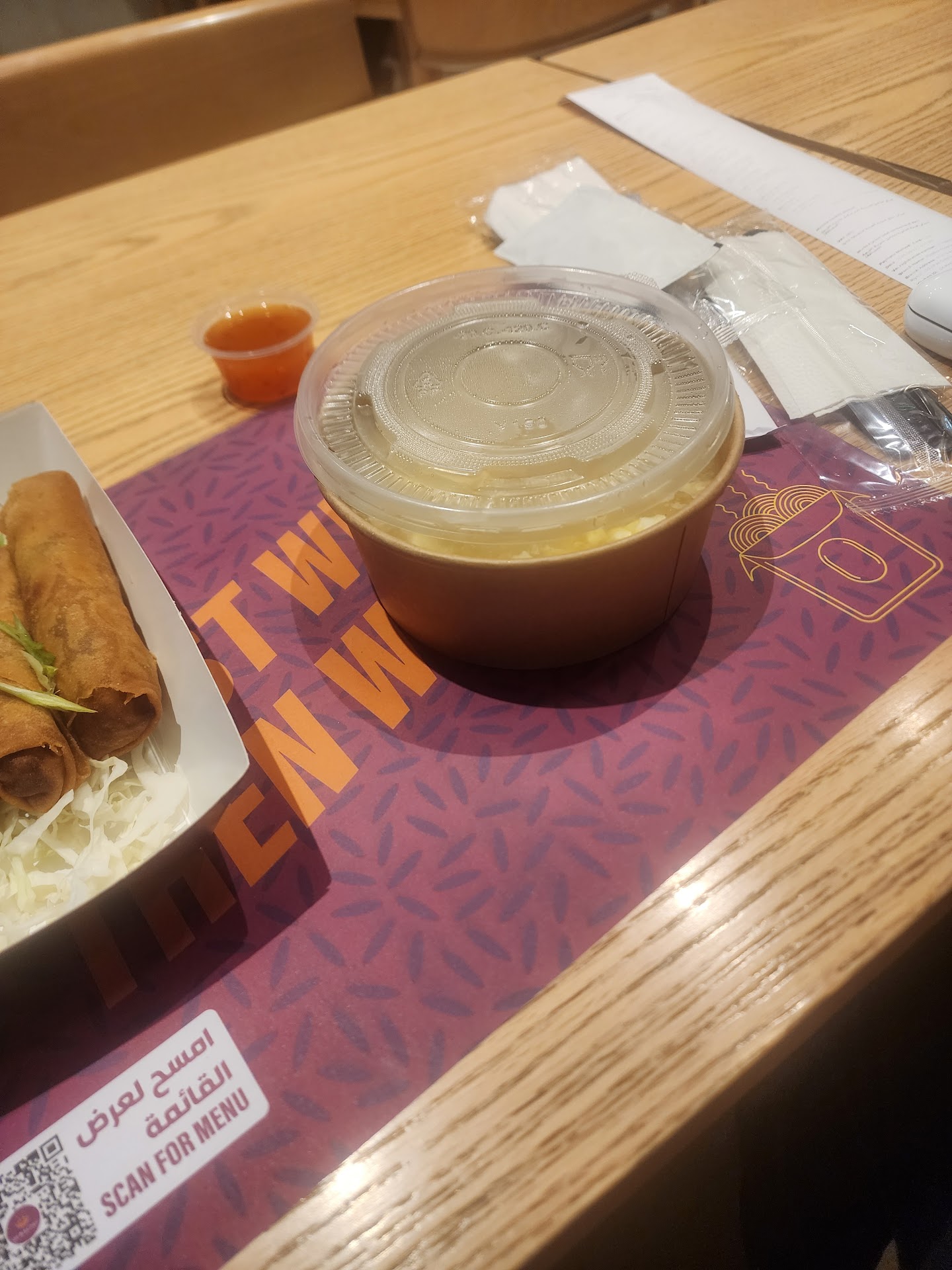 Read moreWhat is worse? The badly printed 5 foot long receipt, the food or the place? I will not make it worse on food and ignore the receipt but why open a restaurant with tables and chairs if you want to turn it to a hungerstation delivery riders Gathering Saloon making it impossible to find a vacant table for a walk in customer?? Not only this but also your staff who does not bother to ask those riders to stop playing tiktok clips on very loud speakers. Isn't it enough how loud are your own staff in the kitchen? This was a disaster experience to me, but hey... who am I to change a culture in a country where even places like McDonald's hire staff suffering from hearing disorders all yell and ignore 10 simultaneous friers' alarms running for a long time that...