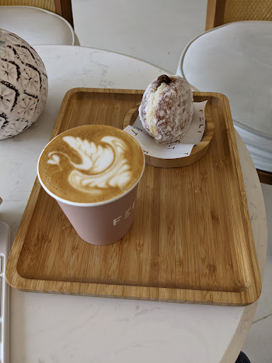 I visited the coffee shop today at 7 pm It was crowded I could finally found a chair to sit and it's a little bit uncomfortable but to be fair the cafe was worth it . Flat white was good ๐ And the honey cake small bite but so yummmy , I really loved it 10/10 Their sweets choices looks yummy But they need to increase tables and chairs because the cafe was full of people but there was not enough place to sit . I will back again to try a lemon cake it looks yummy , but I think 4 or 5 pm a good time to enjoy your coffee there because the place will be nice with the sun light...