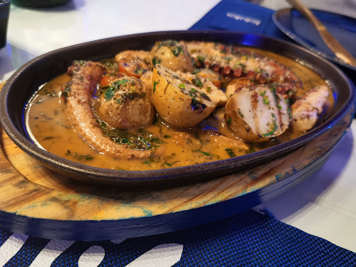 Ā Ā Ā Read moreFood is pretty good. The seating of the restaurant and the decor is amazing and very beachy and bright. The creamy shrimp and lobster soup was very yummy. We ordered the lunch for four and I highly recommend it; it has a collection of everything. The squid (in the lunch) was to die for! I think it was my favorite part of the whole thing. However, I didnāt enjoy the shrimp whatsoever I found it extremely dry and bland. We also ordered fried calamari which was good. We had many problems with the waiters and the food as they kept bringing the wrong dishes and it was very confusing as we had to ask every time if that was something we ordered and it took a long time to call over the waiter. The manager then gave us complementary coffee and tea as a way to solve the problem but I will say the staff definitely need more training. We also had baklawa and rose halkuma for dessert but I personally didnāt enjoy any of them. The baklawa with icecream was too frozen (the baklawa itself) and the rose dessert had barely any halkuma it was just cotton candy...