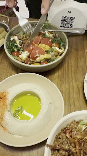 Read moreThis newly opened restaurant specializes in Lebanese cuisine and has a warm, earthy decor that creates a welcoming atmosphere. Despite not having a reservation, we were seated quite quickly, which was a positive start. Our overall dining experience, however, was not entirely satisfying. We ordered a selection of starters, including shanklish salad, mama ghannouj, beetroot salad, loubieh bzeit, black hummus, and French fries. The meal began with a basket of freshly baked bread, but unfortunately, it had a slightly sweet taste and a noticeable hint of milk, which felt out of place for traditional Lebanese bread. When ordering, we specifically asked the waiter whether the fries were made from fresh-cut potatoes, and he assured us they were. However, when they arrived, it was clear they were frozen, which was disappointing. The shanklish salad also fell short of expectations, as the flavor did not resemble authentic shanklish. On a more positive note, the mama ghannouj, made from cauliflower, was the highlight of our meal, offering a unique and enjoyable taste. The loubieh bzeit was also well-prepared and flavorful. To end the meal, we ordered the Umm Ali for dessert, which was served warm and had a deliciously comforting taste. Overall, while the restaurant has potential, it could benefit from some fine-tuning, especially in terms of food authenticity and consistency. A second visit might be worthwhile to explore their main dishes and see if improvements...