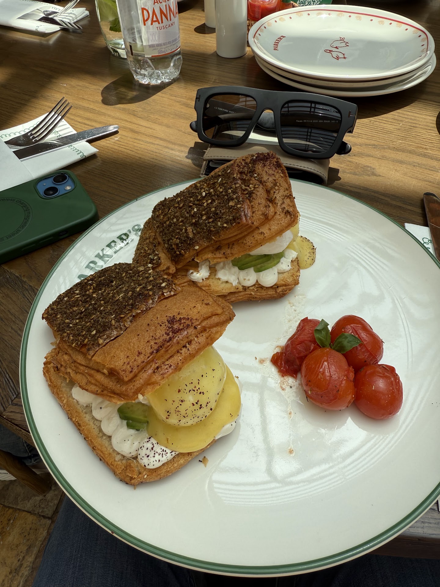 Ā Ā Ā Read moreI went there at 12 in the afternoon for a late breakfast, i was seated quickly, but I was not presented with a menu nor was I presented with any utensils after being fed up with not having a menu I opened their Instagram to see what they had to offer. I ordered an eggs Benedict and a croffle with jam and an iced flat white and fries, the eggs Benedict was fine nothing special, but the croffle was really delicious It took about 30 to 40 minutes to get my food even though the waiter said 20 minutes I made two changes; I wanted the eggs poached and my flat white iced of course when it arrived the changes were not made and I was disappointed, but nonetheless, I ate and enjoyed my food and then I had to ask for utensils after i was waiting 10 minutes (note.I never got my fries).