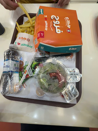 Al-Tazaj is a Fried Chicken (Broasted Chicken) outlet throughout KSA by Fakieh group (owner of Fakieh Chicken), a branch in Dubai The menu has many more variety that they have added with years of growing business They serve fresh baked bread (khubz) white & brown They've stopped Harisa (soup) recently Added Tandoori chicken. They serve Basbousah (Arabic sweet) Added more sweets Women are at the cash counters & also serve in the family sections (which are separate at any food outlets in KSA) Outlets are found crowded at lunch & dinner Outlets have toilets Overall hygiene is maintained Experience is nice. You can get food till 2 am....