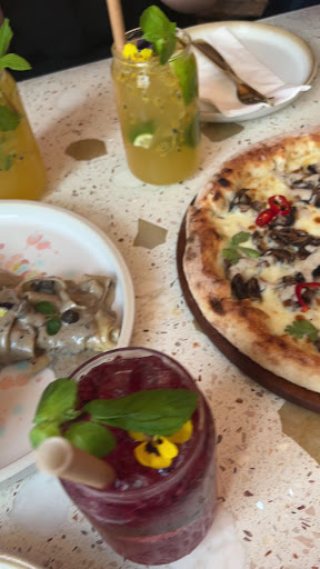 It was pretty much a truffle party, we ordered the truffle pasta and pizza. 10/10 would highly recommend it!!! The flavors were an explosion of freshness with the perfect blend of herbs and spices. I wouldn’t mind having a bigger serving of the truffle pasta though, but that’s just personal preference since we usually order pasta for sharing. The pizza was heavenly, the crust was the perfect consistency of having a crunch to the upper crust but still very soft on the inside. When the dough has a tough consistency I don’t usually eat the entire crust, but I’m happy to report that you won’t experience that here! We also ordered the calamari and fries, I’d give those a 6/10.