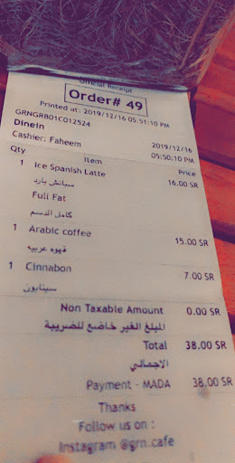 Read moreكجلسات ممتاز ممتاز ومكاني المفضل بالخرج لانه مفتوح وشرح وكوفي استكنان مافيه ازعاج الاغاني الصاخبه مثل باقي الكوفيات الي قلبت ديجي معاد تسمع الي معك وتصارخ عشان يسمعك ليت صاحبه يوسع القاردن اكثر ويهتم بالزرع ورشه لان هالمكان احسه جزء مني ابيه يطلع بصوره افضل نجي للطلبات موهيتو باشن فروت حلو فلات وايت حلوه القهوه سبانش لاتيه بارد سيئ الكابتشينو لاتحاول تجربه بارد وسيئ جدا جدا قهوه عربيه كتقديم ممتاز القهوه جيدجدا بان كيك جيد جدا الحالي سينابون كان لذيذ الاسعار ممتازه كورتادو ماذقته بس الي معي مدحه العيوب : تعيبه نظافه دورات المياه ووجود القطط بالحديقه وكراسي الحديقه قديمه جدا سيئه ومع ذالك...