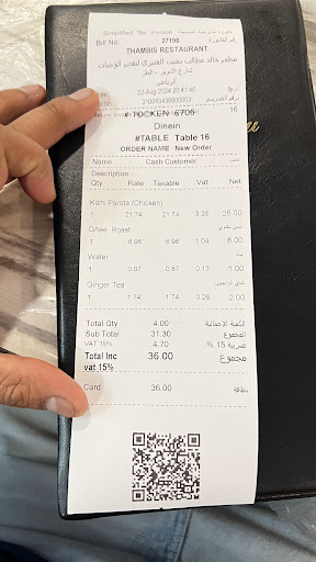 Read moreThambis Restaurant and Cafe offers a decent dining experience for those looking to enjoy a mix of South Indian and café-style dishes in Riyadh. The food quality is generally good, with authentic flavors in some dishes that stand out, especially their dosas and filter coffee, which are worth trying. The portion sizes are fair, and pricing is reasonable compared to other similar restaurants.
