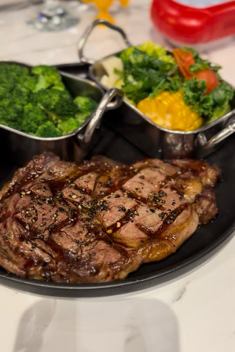 For the main course, I ordered a well-done Australian ribeye steak, and I was impressed by how well it was cooked. Despite being well-done, the steak remained juicy, tender, and full of rich flavor. The beautiful sear on the outside added a delightful smokiness, and the seasoning was just right—enhancing the natural flavors of the premium Australian beef.