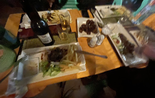Plus: • pretty good fries and also fried banana ‘aloco’. • Wi-Fi: if you manage to get the password (the waiter mumbled a long harangue which we couldn’t hear) • Card payment - big plus
