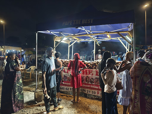 Il primo impatto è essere assaliti da coloro che vi vogliono portare al proprio banco di pesce, è un po' una negoziazione continua. Nell'insieme lo consiglio. Vi scegliete il pesce e loro ve lo cucinano alla griglia. State vicino quando lo lavano dopo averlo pulito, insistete che sia sciacquato bene con acqua di mare. Accortezze di un nostro amico: non farglielo intagliare (perde liquidi e viene secchissimo), fatelo avvolgere completamente nell'alluminio con il loro olio (misto di oli vegetali locali), e cuocere poi sulla griglia. Rimane con la polpa gustosa e mangiabile, altrimenti diventa secchissimo e sa di poco. Crostacei ho evitato per sicurezza. Non volendo verdura cruda, ci hanno messo pochissima banana platano cotta e manioca (o come si chiama qui). Vendono bevande non alcoliche, se volete birra o ve la portate o la mandano ad acquistare in moto con sovrapprezzo. Io ho optato per un cocco venduto all'ingresso, bevuto acqua e con la polpa ho fatto dessert. Fatevi mettere un tavolo in prima fila davanti al mare. Si mangia dal piatto comune, danno una forchetta, alla fine si mangia quasi con le mani poca acqua per lavarsi, consiglio di attrezzarvi prima di andare (disinfettante, tovagliolini, bottiglia acqua). Prezzo non economico, alla fine quasi 20 euro a testa (birre, sovrapprezzi e mancie compresi) o 14 senza birre e mancie (i due pesci che vedete intorno ai 32000 CFA quindi 60 euro) ma l'esperienza ed il posto caratteristico sono consigliate. Ci tornerei. Chiedete ai tassisti...
