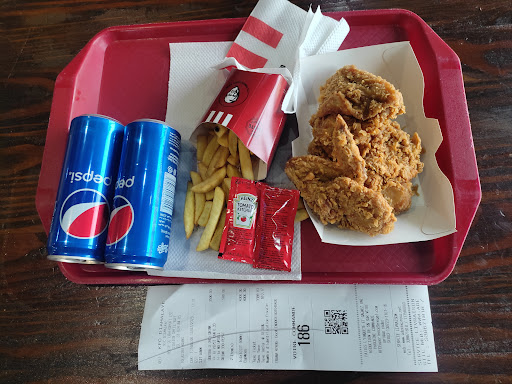Well it was my first drive to the KFC and it was a doozy. Arrived at 7PM to order a bucket for the family and proceeded to the drive tru. Well, that was not as planned as I was told they ran out of chicken already and all they had left was wings and fry. I'm not sure I understood what they meant but they really meant it. No more fried chicken left but wings. Ended up at least ordering a regular chicken sandwich...