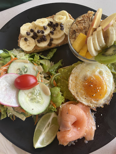 Read moreTook a walk to this coffee and brunch spot and it was totally worth it. The service was great, the staff speaks French, English and Spanish. The food was delicious, healthy and good portion. I had the egg bowl and enjoyed it. The avocado spread was very good to add to the bowl. The salmon was nice and the tomatoes were my favorite part. We also had the energy breakfast. The peanut butter banana toast with chocolate chips was my favorite. The yogurt with granola was also very good. And of course the avocado toast with egg was also delicious. Great outdoor seating space with seashells on the floor. Good wifi speed 8mbps on the outdoor terrace so you might be able to work a bit from here as well. We will definitely be back and I will update this review when we try more items...