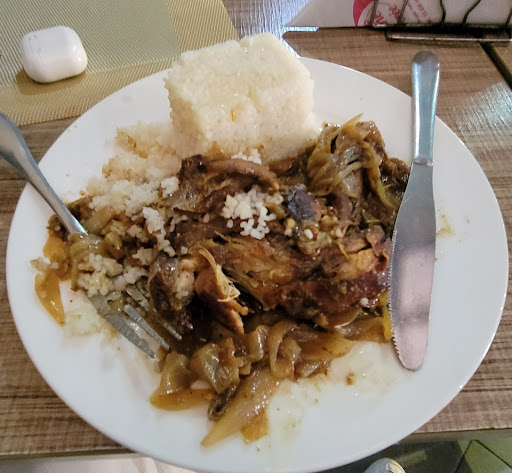 Read moreLe matin, le restaurant a une bonne ambiance pour un bon petit déjeuner j’y passe très régulièrement et l’endroit est même propice pour travailler avec pas mal de prises et un environnement assez propre. Les points négatifs, les ménagères font la serpillière pendant qu’on mange parfois et d’autres fois, il pulvérise l’insecticide et laisse les gens y entrer « ☠️☠️☠️ ». Concernant leur pâtisserie, rien à en redire mais les grillades, c’est vraiment pas la peine. Ils vendent du poulet cramé aux gens à croire qu’ils font exprès. Et leurs salades faites maison sont constituées d’aliments avariés une...