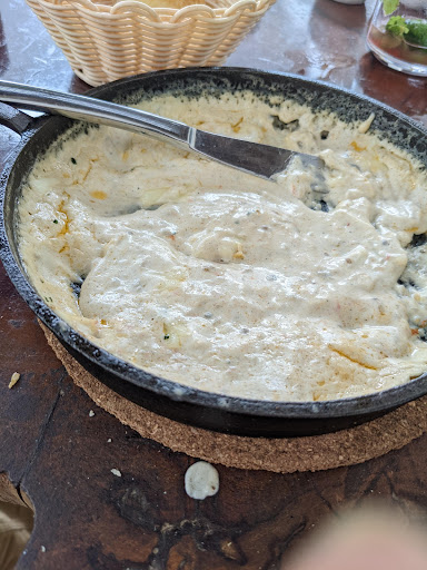 Le plat était quant à lui 2 brochettes de lotte parfaitement cuites avec une sauce en accompagnement hélas qui manquait de piquant car trop timide aprÚs ce sont mes goûts. J'ai donc demandé du piment et nous avons reçu du piment agrémenté d'écorces de citron vert délicieux en guise de sauce.