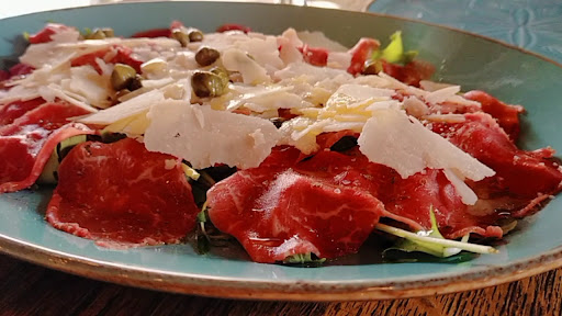The food also didn't disappoint, and we were very impressed. We started with a beef carpaccio, which is one of my faves, and it was perfection.
