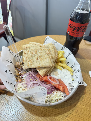 Read moreThere is not much to say about this "business". Any enterprice, that has a maximum of 4 stars, is quite disturbing and not reliable, probably missing something. We went in the evening to eat after party and the results are 2 stars maximum. The chicken was merely cooked and the pita was mushy. They put this so called spicy sauce that was consisted of excesive tomato puree and some, hopefully, spicy ingredients. This probably is a bad method to cover the bad quality of the meat. My stomach was in a terrible condition that evening. The taste was not good at all and we could barely feel the meat. The stuff there was not very helpful, but i can not blame them for their working conditions. THIS IS DISRESPECTUL for the gyros recipe. Fix it. I can not put 1 star because 1 star is a disgrace for the business world. I hope you can do...
