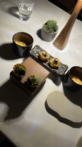 Read moreWe took the 6 dishes menu with wine. Regarding the different pairing wines, they were very good exept one that was a little bit too "special" for our tast. The service staff was competent and welcoming. The restaurant is nice with a very high ceiling and comfortable furniture. We were a bit bothered by the smokers but true non smoking restaurants are very rare in Serbia. The food was good but not great. The amuse-bouche were nice and offered a large selection of flavours and textures. The first dish was disappointing. A layer of crispy pastry with bland scrambled eggs and slices of truffles. It was forgettable. The next one was very good but the size of an amuse-bouche, a crispy saint-jacque big enough for only one bite. The third one was probably the best. Fish on top of spicy swiss shards with a delicious broth. Unfortunately, like every other dishes, it was cold. Maybe it was in purpose but when you are in November and it's rainy outside, I would not serve small portions of food in cold plates. Temperature, texture and flavour combined make great dishes. The meat dish and the foie gras were good, nice presentation too. The lemon tart and elderflower sorbet was a nice finish. We had a good time at Homa but it I was expecting a little more attention to details and generosity...