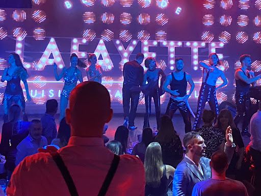 In no way my opinion should affect your expectations as I am only giving the reader my perspective on the opinions that circulate on net or by mouth. For me Belgrade is a city that in my body evokes a kind of energy ( like if I mention lemon and you already feel the acid in your mouth). This Time I decided to visit LaFayette by invitation of my friends. And I entered the club with no expectation. Of course I advise you not to come too quickly to the club because you will be waiting at the door until 21:00 even if it is raining outside. Personally I understand and think that it is right. Regarding the tables I honestly say that wherever you are seated you will always have a first-row feeling. Perhaps our table was really a bit unlucky because right in front of it stands a black pillar which obscures the direction of the stage. But the show takes throughout the hole bar so you wont miss the performence. I don't know what the other waiters were like but we received an excellent one. I hope I'm not changing his name but we were served by the young waiter Nikola. Thank you Nikola. You made also my night a perfect one. Let me say that we chose the package of 150 euros per person. If someone reviews the food here I'm really interested in what they compare it to. Let me say that I did not expect the food to be so good here. The winner for me is definitely the beef Umami. I send a big hat down to the kitchen. There are also some opinions that waiters are rude about small charges but let me give you some advice: how much to reward someone who serves you from head to toe for hours . Be fair and reward his hope and effort. So let me finish on the part where there is a fear that the prices are too high. At any moment you can ask your waiter how much credit you still have. So don't be afraid. We were drinking and eating whole night . I was already afraid that my pants would burst but we still had money in our account. Without a bad conscience if somebody dont spend the hole money think that we overlook all the other people behind the show. Let alone the kitchen staff. But what would be an opinion if you can not find some critisism. No, it's not like that. I was surprised that white sneakers with laces and jeans also entered the club eventhogh there was written in instructions that no sneakers are allowed.Know that these are exceptions and in fact you will feel like ugly ducklings if you dress inappropriately so this rule may be overemphasized but dress nicely because you will really feel satisfied. As for the wardrobe I might really advise a different strategy. Ist a shame for the club that after a wonderful evening there is a bitter aftertaste because of the wardrobe payment. And if the hostess is having a bad day she may be really unpleasant to answer and fight with almost every guest. Personally I will conclude like this. Every time Belgrade allows me at least for one evening i will visit La Fayette. Even if we know the program I will visit it because of the good food, fair prices and great music and dance performance. And of course I'm not encouraging the owners to raise the prices of the service I'm just letting you know that it's correct. I wish the owners many more nice evenings and I advise you as a reader to visit the club. Take the whole Umami and all feelings from the club for many more days after the visit. Let the the energy of the city...