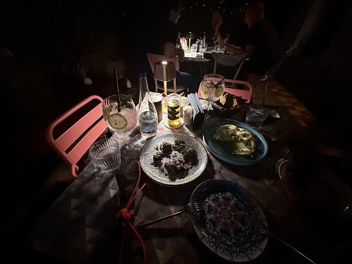 I had read tempting selfpraising report and decided to give a try. Afternoon hunger . Late.lunch. the lady(, owner?) was not particularly friendly...although not hostile. I chose a watermelon carpaccio with goat cheese followed by a young veal tbone steak( or was it a schank?) 🤔. The 1rst question coming to my mind after both tasting was...is there a chef behind the door? Or just an afternoon shift assistant running written routines? The watermelon carpaccio was rather good but was floating in a tasty but highly acid olive oil. A real chef would not serve it this way. The whole idea was excellent but the overwhelming oil acidity covered all other tastes. Then came the veal meat. It was probably cooked hours before and oven reheated in few minutes. If you ever cooked a bony meat in the oven you would know that you can not touch the bone when it is ready. Because you would burn your fingers. And you certainly have seen lamb shanks or tbone steaks served with some aluminium foil protection on the bone. Here...i could hold the bone which was hardly even warm. The meat was tender and delicious as such( which proved loooong oven baking and not few minutes). But it was nearly cold. Only outer layer warm because quick reheating can not impact the heart of any meat. I did not intend to comment but as the lady asked me how was rhe meal i told her it was not warm. She frowned and tried to convince me it just came out of the oven. This was a second crime😁. To try to convince a client that HE is wrong and he does not know what is cold and what is warm. A meat just freshly baked and coming out of an oven exhales its temperature and you can feel it atrongly when you bite. This meat was hardly at 25 degrees at heart. On top of it there were some agglomerated bits of what looked like an idea of sauce gribiche. Proving again the absolute lack of appropriate temperature. There was a "fresh garden salad" served as side. Again..the leaves and carrot bits( which had no special extraordinary taste) were soaked in oil and vinegar. A chef would never balance a salad dressing like this. As for the white wine...i followed the recommendation for the best local one. It was indeed good. BUT...suffered from the same syndrom of the meat. Actually it was close to mate with the meat temperature...