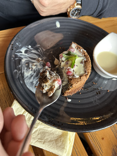 We went all in on traditional Serbian cuisine and were not disappointed. We ordered grilled lamb—the kind that’s cooked whole on a spit and then carved into juicy, tender pieces. It was absolutely flavorful. Alongside that, we had kaymak, a fresh tomato salad, and hot chili peppers. For starters, we enjoyed a liver tartare, which was unique and well-prepared.