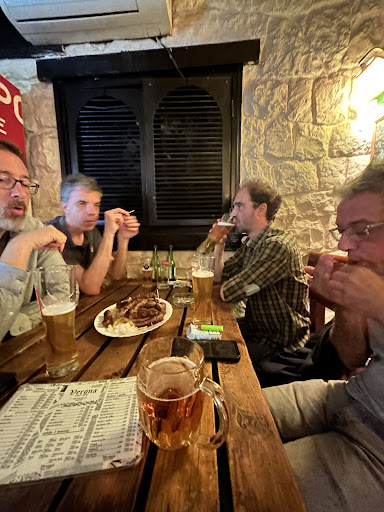 Read moreВ этой вселенной есть сущности, которые мы не можем и не должны оценивать в рамках общепринятой системы координат. Это заведение существует в квантовом мире. Здесь может быть пересолена картошка и не дожарены чевапи, но все это не имеет смысла, когда ты соприкасаешься с вечностью. Веселые, обсуждающие футбол сербы, пиво в кружках с ручкой, милейшая официантка, успевающая обслуживать десяток столов и роштиль - это поэзия, а не проза жизни. Если вам что-то не понравилось, вы просто не из этой вселенной, пиздуйте и не возвращайтесь. Но если Тарковский для вас не просто фамилия, а Микеланджело не черепашка, вы просто обязаны раствориться в стакане сербского лагера и забыть о том, что ждёт вас по выходу из этого места. Ведь то что вне - не имеет вообще...