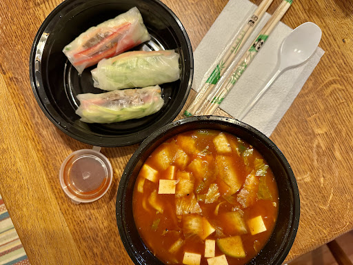 The spring rolls arrived with an unexpected dipping sauce – a pepper paste, rather than the anticipated sweet chili. While the rice paper was of good quality, the filling was a letdown. Although all the listed fresh vegetables, including cucumber, red paprika and iceberg lettuce were present, the dry meat failed to harmonize with them, resulting in a lackluster experience. Overall, this order is difficult to recommend, considering the price and overall satisfaction. It was more of a disappointment than a...