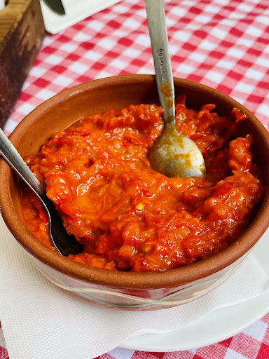 We ordered goulash, grilled veggies, and a local favorite salad of blended red peppers and eggplant. I have never had a brown goulash, but why not, the word simply means stew and not red stew. It was fantastic. The veggies were perfectly cooked and the salad with bread was scrumptious.