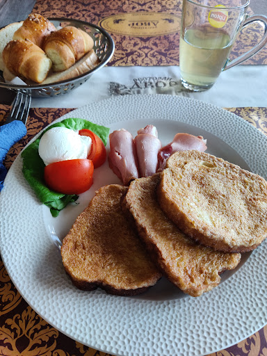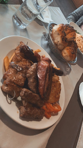 Пришли к обеду. Заказывали суп, салат и горячее. Суп говяжий был наваристым, хоть мясо и не было, овощей было достаточно в тарелке, также с ним подали булочки. Салат лёгкий, только овощи, заправлен маслом оливковым, такой летний получается, все свежее, овощи хрустели) дальше горячее, заказывали телятину с картофелем, курицу с овощами гриль, рисом и мясное ассорти. Телятина была нежная, мягкая и вкусная. Курица необычная, в панировке, внутри была остринка в виде перца жгучего, мясное ассорти тоже отлично приготовлено и большое разнообразие в тарелке радовало. Самое вкусное, что было в каждой тарелке - это похожий на "мороженое", сыр. Сделан из сливок, долго видимо варится и потом замораживается, но на вкус просто обалденный. Порции большие. Я даже хлеб не ел и понял, что панировка в меня не влезет. Обслуживание было на высоте, звали официанта Иван, говорит на русском, что было вдвойне приятно, а ещё забыл сказать про кофе, неожиданно для меня, кофе было вкусным, рекомендую! По ценам - пять порций еды, хлеб, вода и кофе вышли на...