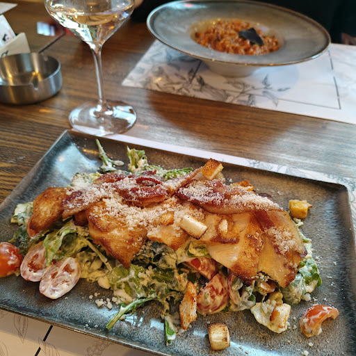 The Caesar salad looked great but was heavy on the mayo. Pileći batak was well-prepared and tasty, though slightly overpriced for the portion. Draft beer options are limited—only one available during our visit.