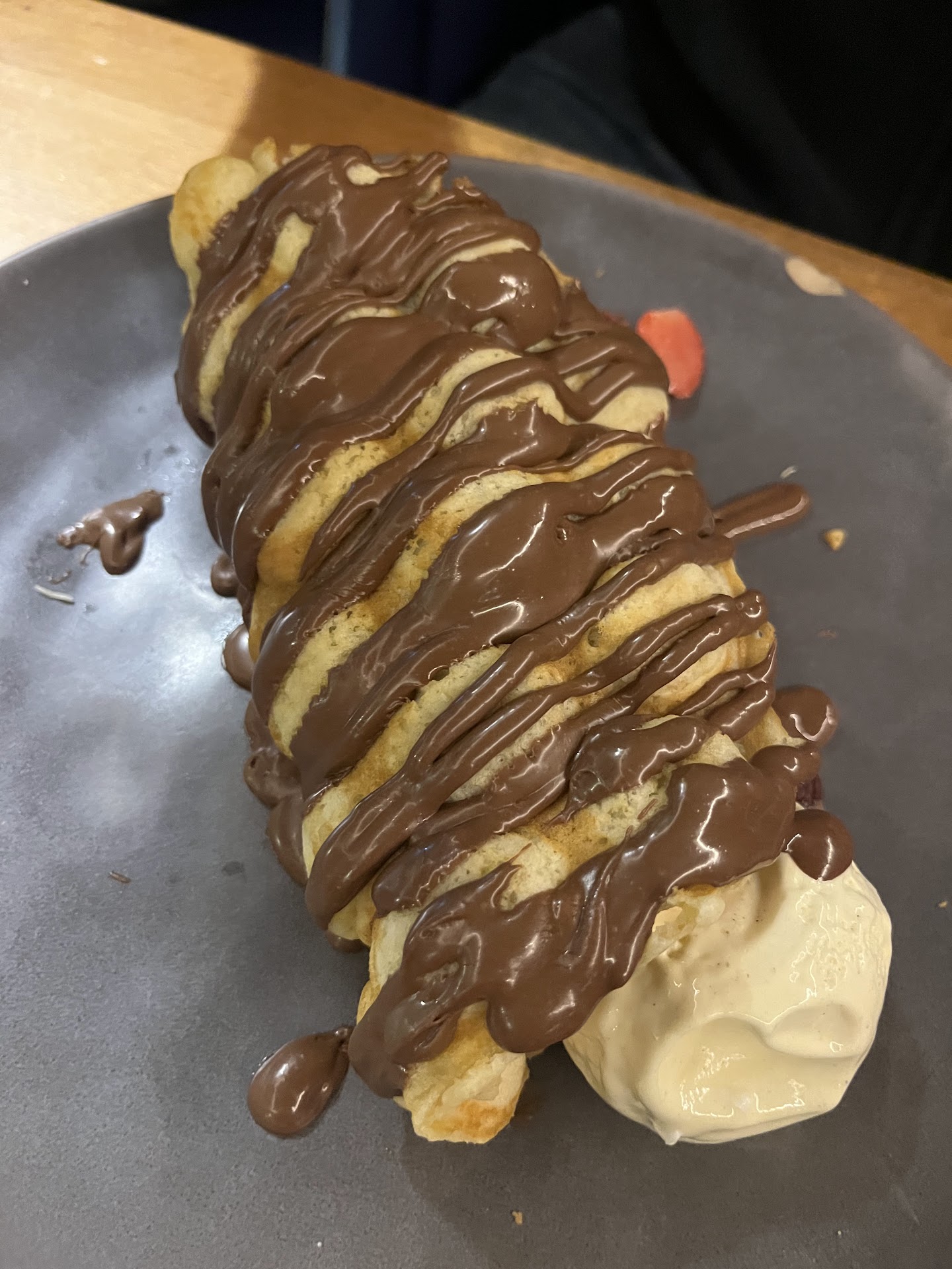 Rating: Veal soup - 4 stars Chicken wrap - 3 stars Turkey with pesto - 5 stars Waffle - 5 stars Dubai crepe - 3 stars Classic nutella crepe - 5...