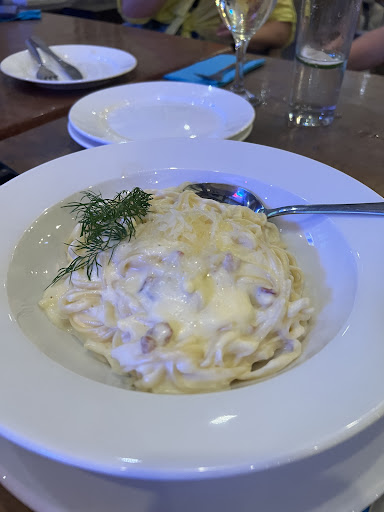 We ordered also pasta carbonara, but there were no eggs in sight â just a floury, heavy mess - carbonara with bĂ©chamel sauce - NO. The shrimps, we ordered came with bĂ©chamel sauce as well, which made absolutely no sense. The only good thing was the burger weâve ordered, but the fries on the side had very strange taste.