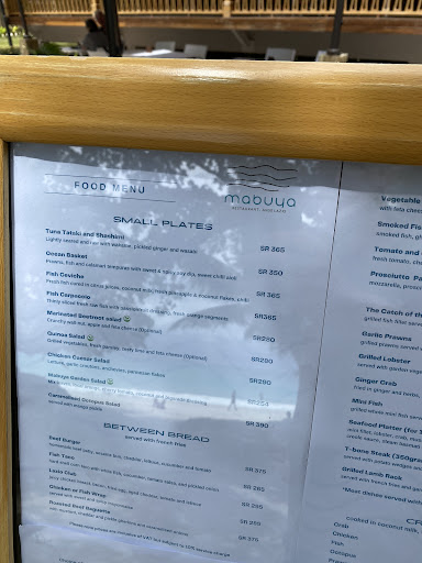 Read moreIch war nun schon einige Male und Jahre als Gast im Mabuya. Leider ist der Service einfach so schlecht geworden, dass ich nun eine Bewertung schreibe, in der Hoffnung, dass das Management das ernster nimmt. Denn der Platz hat wirklich extrem viel Potenzial. Die Lage ist traumhaft, der Ausblick gleicht einer Postkarte.