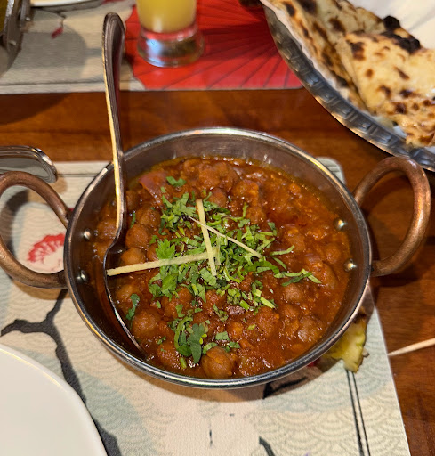 I'm vegan and gluten free, so I appreciated the symbols on the menu, which are designed to make ordering easier. However, I noticed that almost all the meal options had a milk symbol except for the Indian Green Salad and the vegan dessert made with soymilk. I asked our server if there were other options for me. She said she would speak with the chef. To my group's pleasant surprise, Chef Pauljoe came to the table, asked who was vegan, and proceeded to show me all the items he could make for my dietary restriction. I ordered Peshawari Chana - Punjabi (chickpeas stewed in tea leaf with carom seed and cumin spices with no milk) and Bhindi Do Pyaza - Mumbai (lady finger/okra with onion, tomato, garlic, and Indian spices with no milk). Both dishes were delicious. Chef Pauljoe returned to check on us and make sure we were enjoying our meal, which was also very nice of him. He invited us to come back and try more dishes.