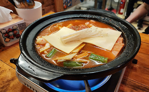 21:15: One of the staff came to ask if the army stew's pot can be cleared. There was still some food in it. We asked if the restaurant closes at 22:00. Staff said yes.