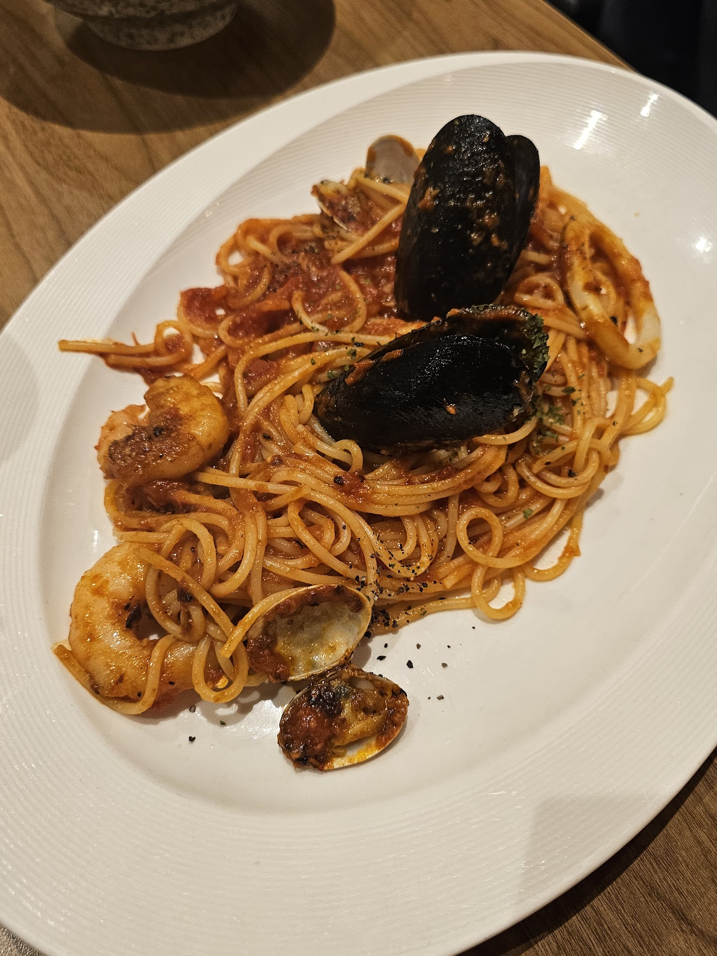 Truffle Tender Loin Steak Don: Cooked to perfection, the tenderloin steak was juicy, flavorful, and melt-in-your-mouth tender. The rich, earthy truffle flavor elevated this dish to new heights. Served on a bed of Japanese rice, this masterpiece was a harmonious blend of East meets West. Ocean Arrabiata: This seafood pasta dish was a symphony of flavors and textures. Spicy arrabiata sauce, succulent seafood (prawns, scallops, and mussels), and al dente pasta created a truly unforgettable experience. Dark Chocolate Soufflé: The piÚce de résistance! This rich, decadent soufflé was a chocolate lover's dream come true. Light, airy, and indulgently chocolatey, it paired perfectly with the accompanying vanilla ice cream.