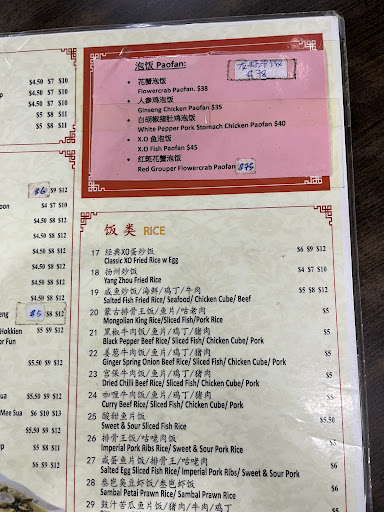 Read moreordered the white pepper pig stomach chicken pao fan for $40. it came in a ceremic bowl and a whole chicken and a lot of pig stomach. there were also some ginseng provided, and i’m not sure if it was intentional… the first few mouths were really great because the broth is a little peppery with a tinge of ginseng… reminds me abit of korean ginseng chicken dish… when it first arrived, the crispy rice bits were really nice but halfway into the bowl, it was super duper gelat. and made me very thirsty. they only sell it in one size and would be great if there were smaller sizes so we can try other dishes. i saw others eating the crab seafood paofan and unless you want to get your hands dirty, it’ll be very messy. my only two gripes (hence minus two stars)- i find $40 a little bit too pricey for the bowl that we had…. and it felt like a rojak of ginseng chicken and pig stomach. might just be a mistake and they served it anyway. and second, the ambience/environment is not the cleanest, it’s filled with a lot of rowdy beer drinkers who are commingling amongst 3-4 tables with loud music blasting. because the coffee shop is small, the loud noise was really not pleasant...