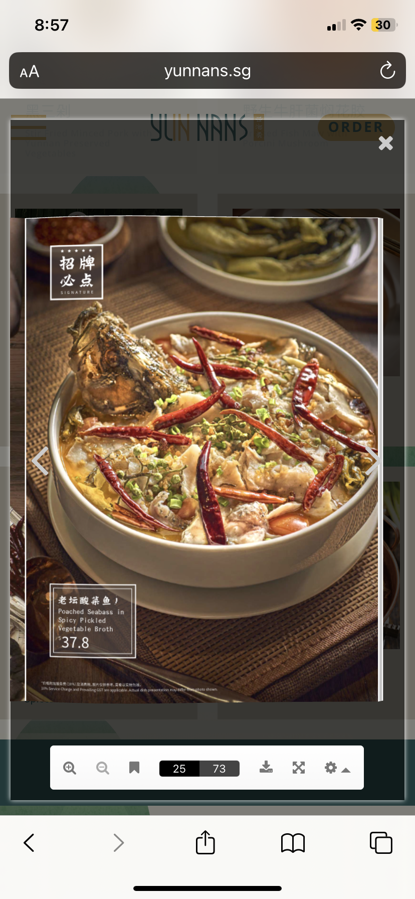 for $37.80, the poached seabass in spicy broth did not come with a whole fish head, as pictured in the menu. the soup also did not come with beansprouts, as mentioned by our server when we asked her about the ingredients. instead, it came with underwhelming slices of fish and a meagre amount of vegetables. it was also served quite late.