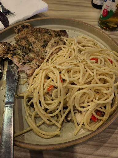 First time im having aglio olio without any garlic…just look at the pictures for reference. All i can taste from the aglio olio is chilli (overly spicy) and salt, noodle texture is too soft, overall very bad. Chicken is 4.5/10.